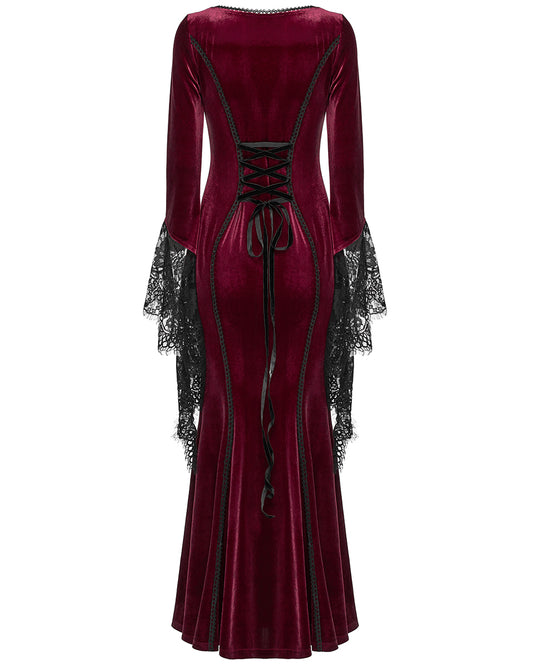 WQ-889LQF Womens Dark Gothic Velvet Applique Fishtail Dress