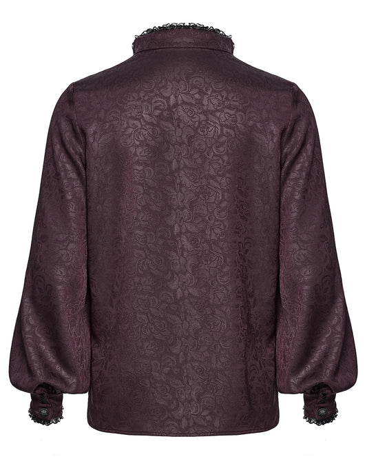 PR-WY-1785 Mens Gothic Embossed Print Lace-Up Pirate Shirt - Red