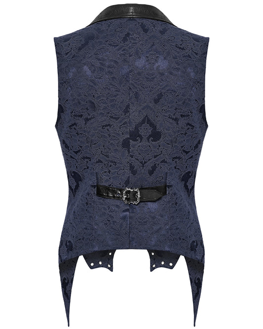 WY-1765MJM Mens Dark Victorian Gothic Damask Jacquard Waistcoat Vest - Blue
